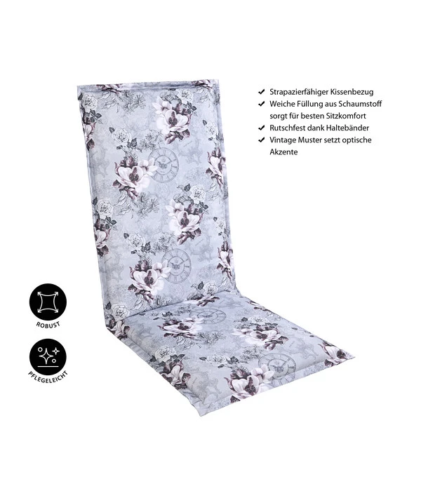 Verwandeln Sie mit dem Dehner Hochlehnerpolster Loire Ihre Garten- und Balkonhochlehner zu komfortablen Bequemsesseln. Dank seines starken Polyurethan-Kerns, der von weicher Polyesterwatte umhüllt ist, verleiht das Dehner Hochlehnerpolster Loire Ihren Hochlehnern eine Behaglichkeit, die mit der von Polstermöbeln für den Innenbereich vergleichbar ist. Mit dem Dehner Hochlehnerpolster Loire können Sie sich entspannt zurücklehnen und wohlfühlen. Die Polsterauflage optimiert nicht nur den Sitzkomfort. Mit ihrem edlen Vintage Motiv, das einem hohen ästhetischen Anspruch gerecht wird, trägt sie auch zu einem schönen Ambiente im Garten, auf der Terrasse oder auf dem Balkon bei. Deshalb sollten Sie nicht zögern, das Dehner Hochlehnerpolster Loire jetzt zu bestellen.