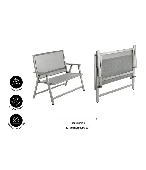 Wie Sie es von einem Gartenmöbel in Dehner Markenqualität erwarten können, wird auch das Thema Haltbarkeit, Wetterfestigkeit und Komfort großgeschrieben. Deshalb wurde für die Dehner Klappbank ‘Chicago‘ pulverbeschichtetes Aluminium für das Gestell und das moderne Funktionsgewebe Textilene für die Sitz- und Rückenflächen gewählt. Das Ergebnis: Die Gartenbank ist angenehm leicht, aber trotzdem sehr stabil und wetterfest, während das Gewebe mit bestem Sitzkomfort verwöhnt. Die Textilene-Bespannung ist luftig leicht, strapazierfähig, witterungsbeständig und schnelltrocknend. Und ist die Gartenbank mal verschmutzt – einfach mit einem feuchten Tuch abwischen – fertig!