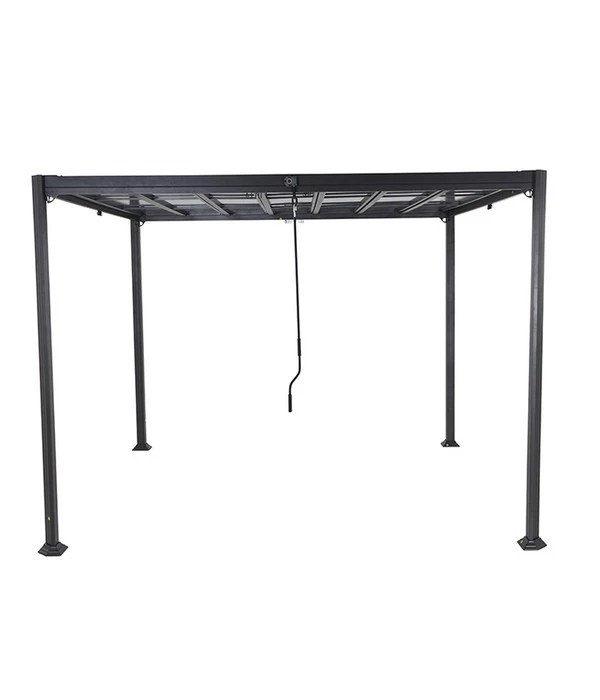 Der Siena Garden Pavillon Florenz hat ein solides Gestell aus Aluminium, das dank einer Pulverbeschichtung über eine ausgezeichnete Korrosionsbeständigkeit verfügt. Es ist außerdem gut witterungsbeständig und hält Sonne, Regen und UV-Strahlung bestens Stand. Das Dach besteht aus sieben Polycarbonat-Lamellen mit einer Stärke von 6 mm, die Sie manuell um 90° verstellen können und so mal mehr, mal weniger Sonne auf Ihrem Sitzplatz haben. Ausreichend hell ist es aber auch bei geschlossenen Lamellen, denn diese sind transparent.