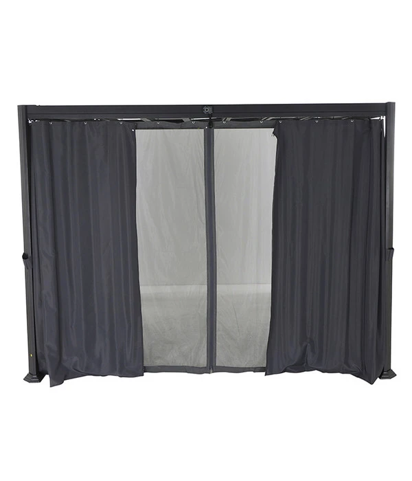 Was daran positiv ist? Ganz einfach: Dank dieses Schienensystems können Sie beim Siena Garden Pavillon Florenz an den Seiten Vorhänge und Moskitonetze anbringen und diese zeitgleich verwenden oder separat voneinander öffnen und schließen. So sind Sie und Ihre Lieben jederzeit optimal geschützt – vor kühlem Wind wie auch vor lästigen Mücken und gefährlichen Wespen.