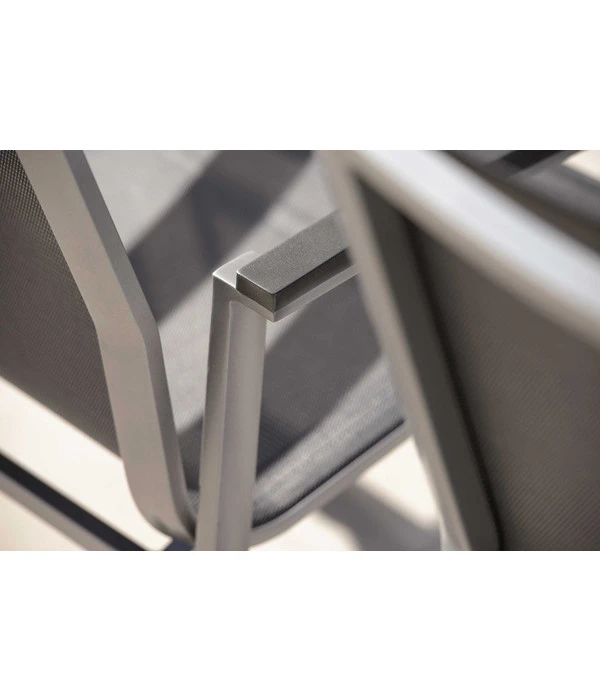 Gartensessel müssen viel aushalten. Wenn sie Tag für Tag draußen auf der Terrasse oder dem Balkon stehen, brennt mal die heiße Sonne auf sie nieder, mal stehen sie buchstäblich im Regen. Und in der schlechten Jahreszeit müssen sie auch noch Schnee und knackigen Frost aushalten. Aber dank moderner Funktionsmaterialien ist das für Gartenmöbel wie den Stern Stapelsessel New Top nicht mehr der Rede wert. Deshalb konnte sich der Designer auch voll auf die Optik des Gartensessels konzentrieren, die ihm, wie wir finden, perfekt gelungen ist. Zu dem zeitgemäß schlichten Gestell in der Trendfarbe Graphit kombinierte er ein silberfarbenes Outdoor-Gewebe – ein Mix, mit dem der Gartensessel Ihrem Outdoor-Bereich eine Atmosphäre nobler Eleganz verleihen wird. Genießen Sie bald mit Ihrer Familie und guten Freunden viele entspannte Stunden in dem Stern Stapelsessel New Top!